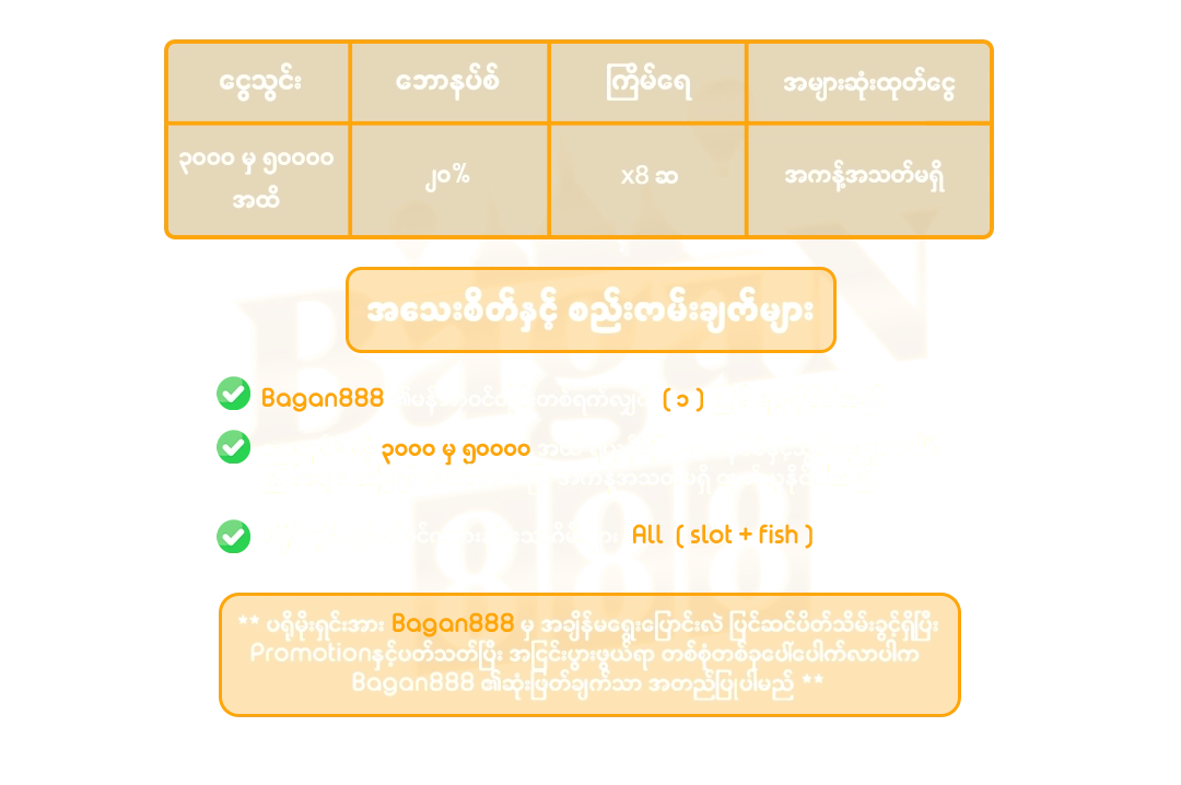 6. BAGAN888.com has the right to amend, change and stop the promotion at any time without prior notice.